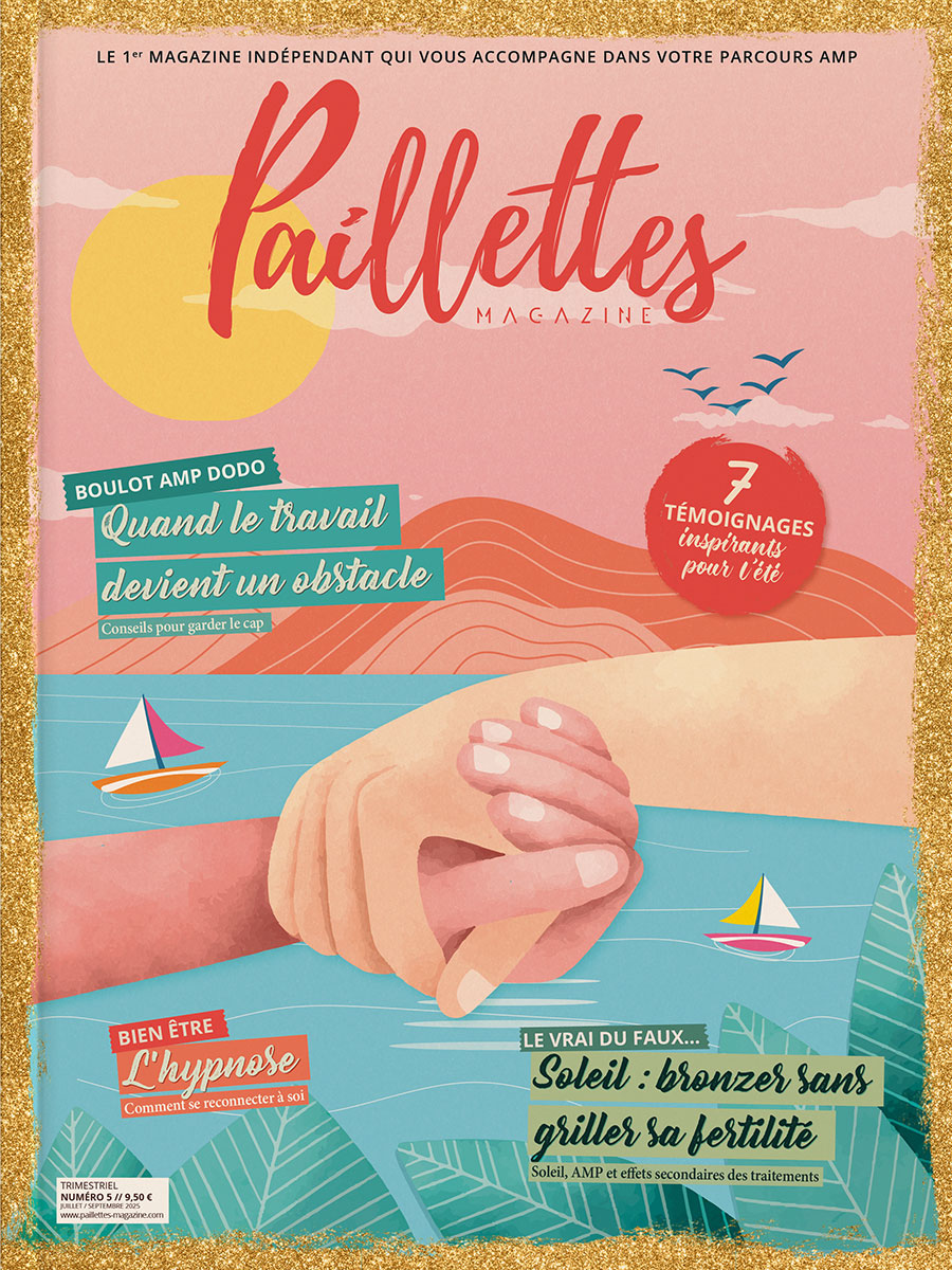 L’AMP, ce n’est pas de la magie, alors pourquoi « Paillettes » ? Parce que c’est bien plus charmant que « PMA Magazine » et qu’en plein parcours, on a besoin de douceur, de lumière, de légèreté. C’est aussi le joli nom donné aux tubes qui conservent vos gamètes dans les laboratoires. Bref, c’est une histoire de science, de vie et de rencontres.